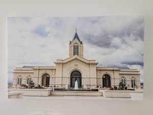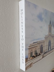 My husband took one of the pictures of the Fort Collins temple and printed it on canvas and had the words “Holiness of the Lord” printed on the left side of the canvas, and “House of the Lord” on the right side. I thought that it turned out very nice and suggested that he should sell it. It you would like to see what it looks like and maybe get one for your own house, you can find it here by clicking on this link: Temple Canvas